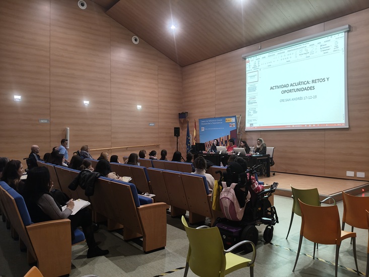 Ayer, en el centro Sandra Alvarez Prieto, presentó a Mª del Mar García que habló de las actividades acuáticas para las personas con discapacidad.