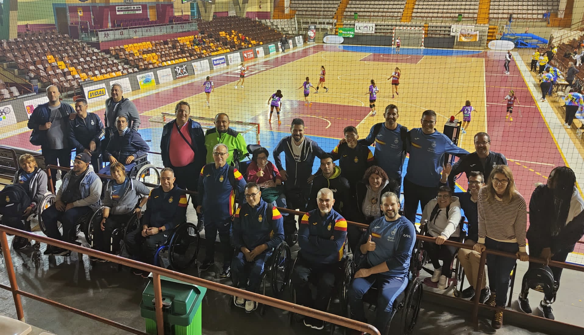 Dentro de los entrenamientos preparatorios de los Campeonatos Mundial y Europeo de Balonmano en silla de ruedas, los jugadores de la selección disputaron este sábado 12 de noviembre un partido amistoso entre los integrantes de la propia selección en el Palacio Municipal de Deportes de León contando entre el público con usuarios del Centro de Promoción de la Autonomía Personal (CPAP) de Bergondo (La Coruña), el CRMF de Salamanca y del CRE de Discapacidad y Dependencia del Imserso con el fin de promover la autonomía personal a través del deporte.